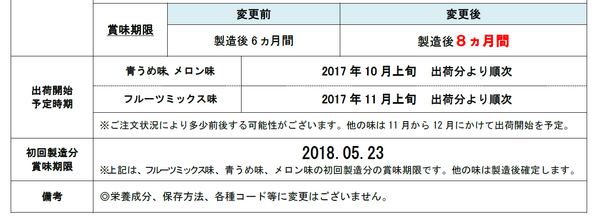 フルーツミックス味、青うめ味、メロン味:2018年5月23日