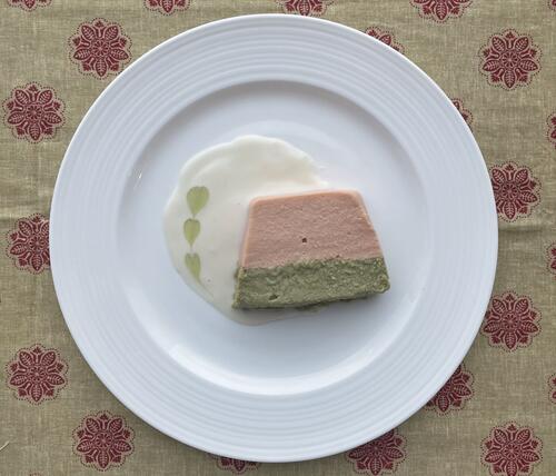 - 固まったら型から取り出し、適当な厚さに切って、器に盛り付けます。